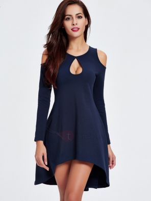 Off-the-Shoulder Long Sleeve High-Low Day Dress